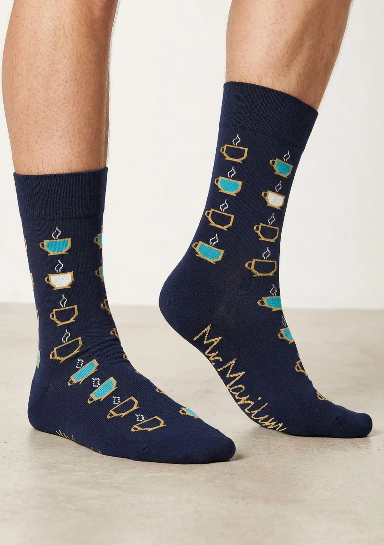 Herren-Socken über dem Knöchel mit einem Tassenmotiv sind ein Modell, das dem Alltagsstyling einen leichten, humorvollen Akzent verleiht. Kontrastreiche Details ziehen die Blicke auf sich und sorgen dafür, dass sich das Modell schon auf den ersten Blick abhebt. Es ist ein Vorschlag für Männer, die Komfort schätzen, aber auch Accessoires mit Idee und einem gewissen Augenzwinkern mögen.